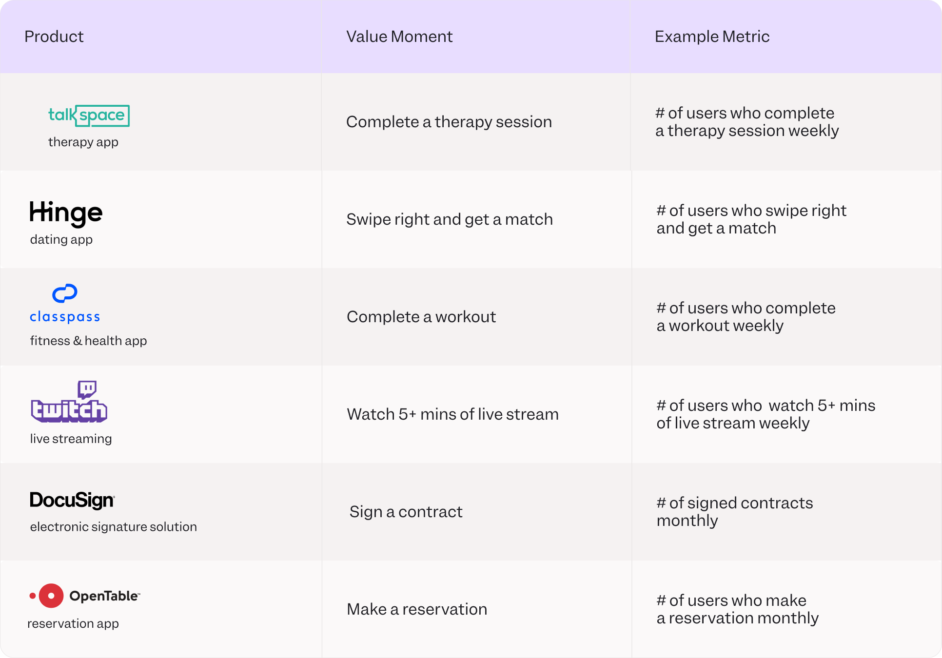 A helpful tool in measuring value for your product is defining the so-called “value moments”—user events or actions that indicate that a person is getting value out of your product.